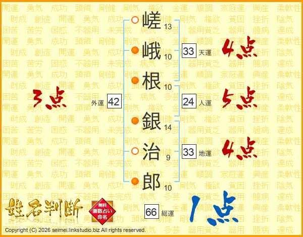 嵯峨根銀治郎さんの総運は66画の1点!