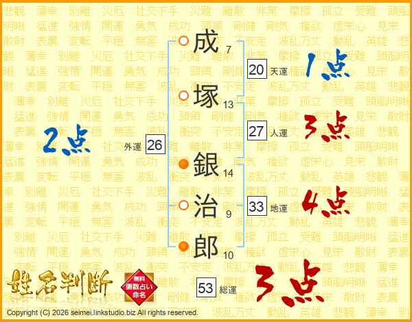 成塚銀治郎さんの総運は53画の3点!