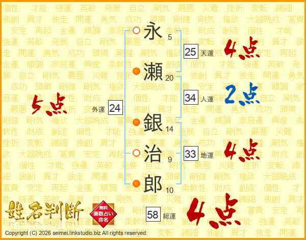 永瀬銀治郎さんの総運は58画の4点!