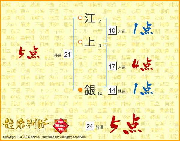 江上銀さんの総運は24画の5点!