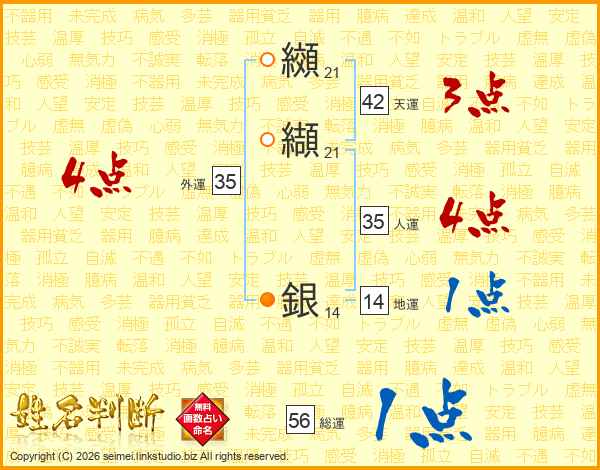 纐纈銀さんの総運は56画の1点!
