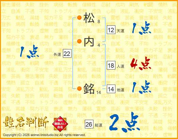 松内銘さんの人運は18画の4点!