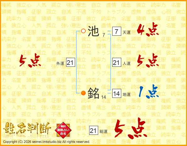 池銘さんの総運は21画の5点!