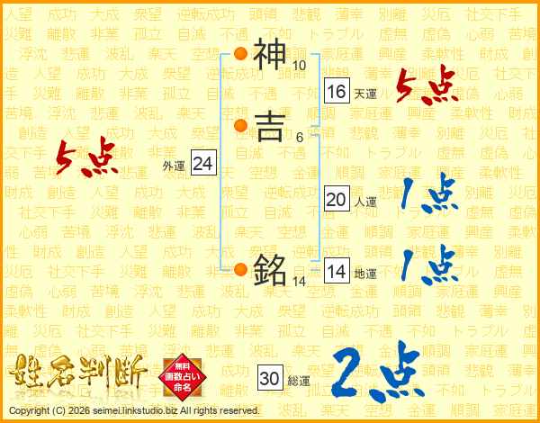 神吉銘さんの総運は30画の2点!