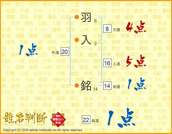羽入銘さんの総運は22画の1点!