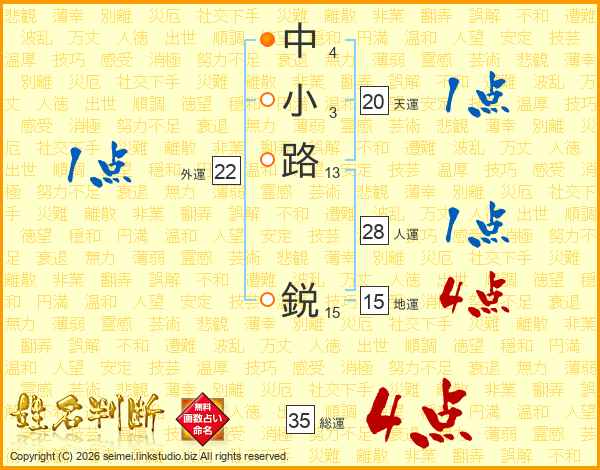 中小路鋭さんの総運は35画の4点!