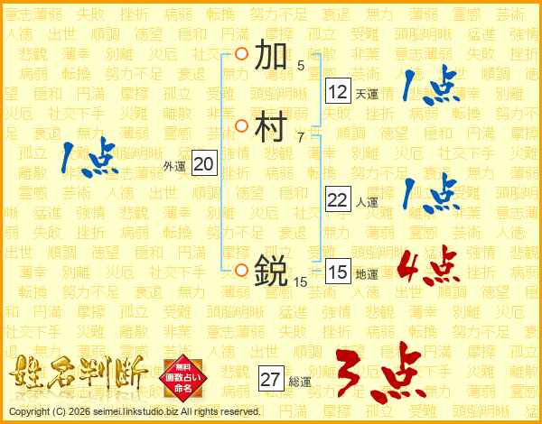 加村鋭さんの人運は22画の1点!