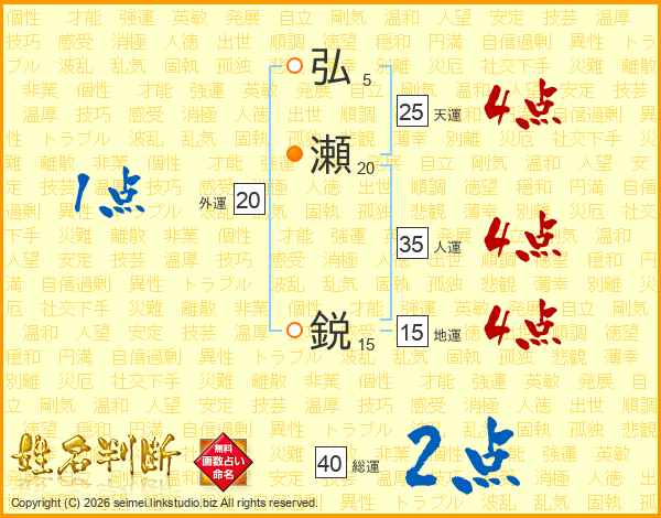 弘瀬鋭さんの総運は40画の2点!
