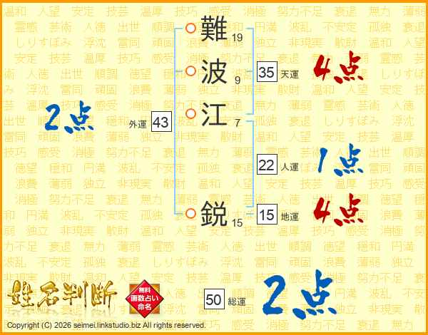 難波江鋭さんの総運は50画の2点!