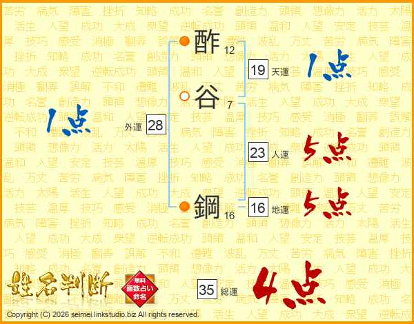 酢谷鋼さんの総運は35画の4点!