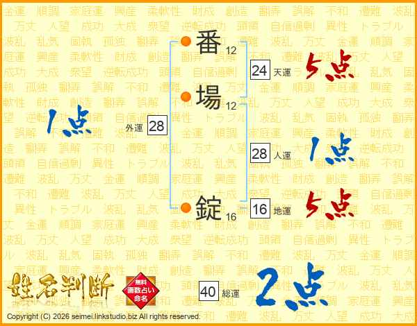 番場錠さんの総運は40画の2点!