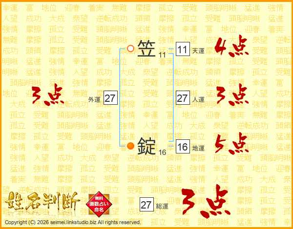 笠錠さんの天運は11画の4点!