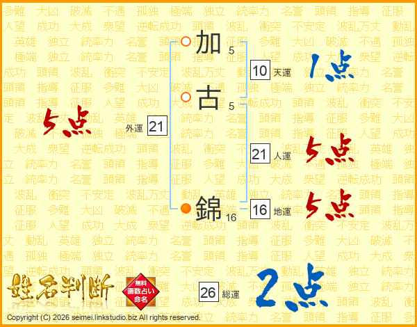 加古錦さんの総運は26画の2点!