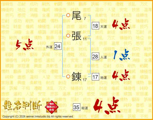 尾張錬さんの総運は35画の4点!