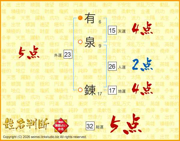 有泉錬さんの人運は26画の2点!