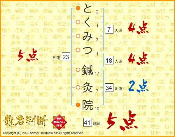 とくみつ鍼灸院さんの総運は41画の5点!