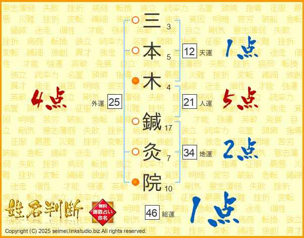 三本木鍼灸院さんの総運は46画の1点!