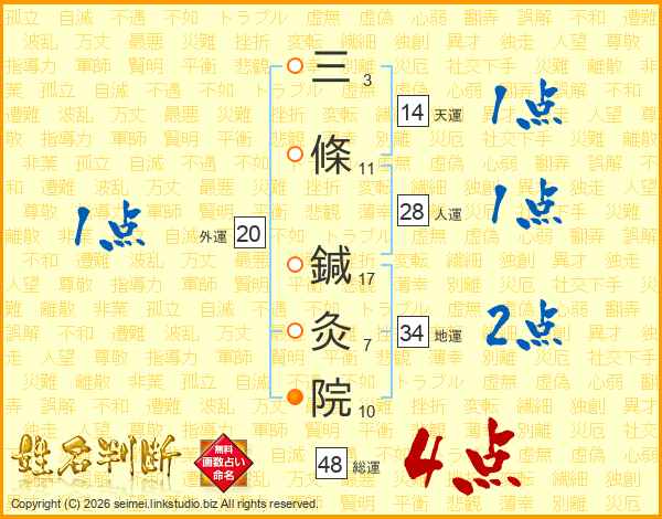 三條鍼灸院さんの総運は48画の4点!