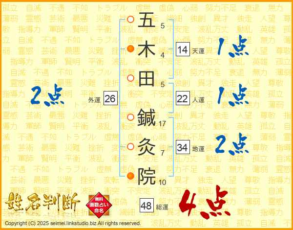 五木田鍼灸院さんの天運は14画の1点!