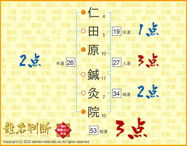 仁(4画)田(5画)原(10画) 鍼(17画)灸(7画)院(10画)