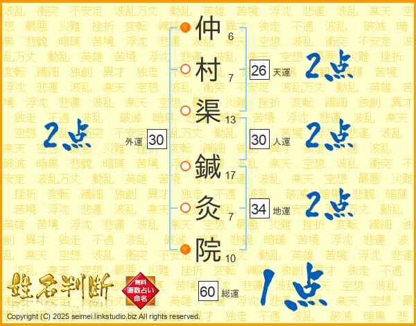仲村渠鍼灸院さんの天運は26画の2点!
