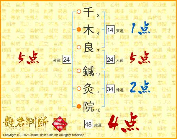 千木良鍼灸院さんの人運は24画の5点!