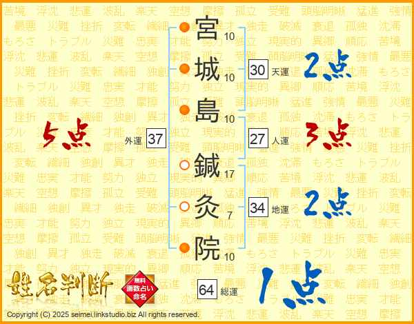 宮(10画)城(10画)島(10画) 鍼(17画)灸(7画)院(10画)