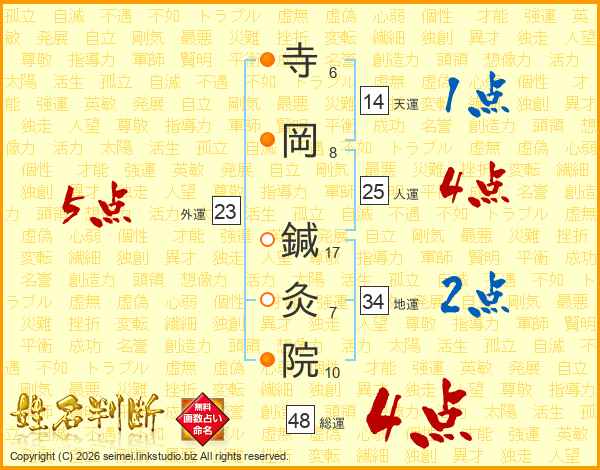 寺岡鍼灸院さんの人運は25画の4点!