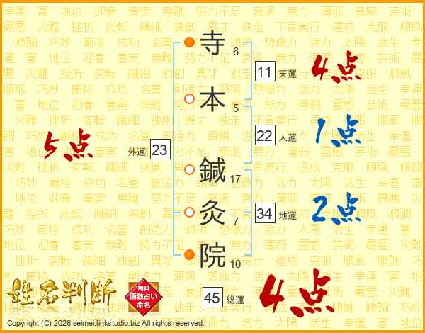 寺本鍼灸院さんの総運は45画の4点!