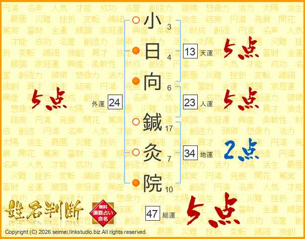 小日向鍼灸院さんの総運は47画の5点!