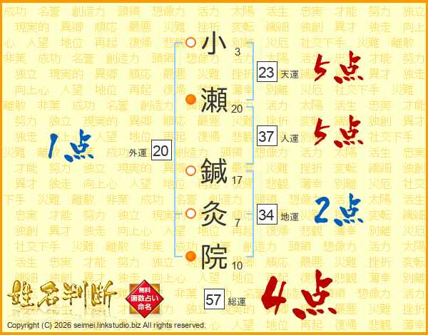 小瀬鍼灸院さんの総運は57画の4点!