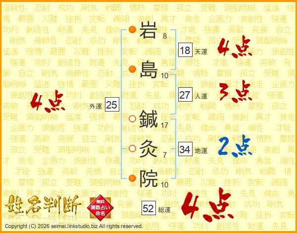 岩(8画)島(10画) 鍼(17画)灸(7画)院(10画)