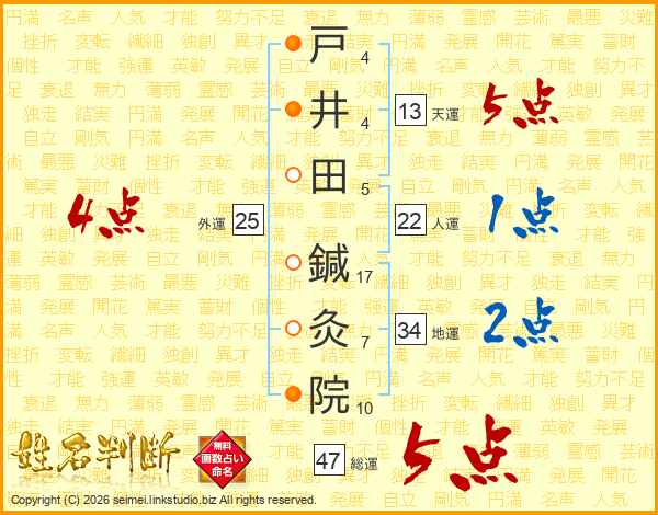 戸井田鍼灸院さんの総運は47画の5点!
