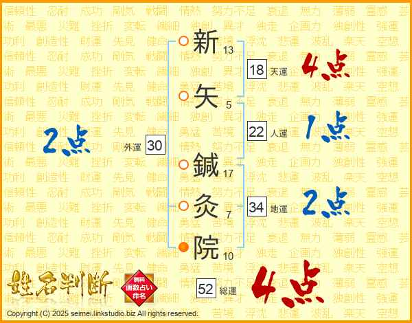 新(13画)矢(5画) 鍼(17画)灸(7画)院(10画)