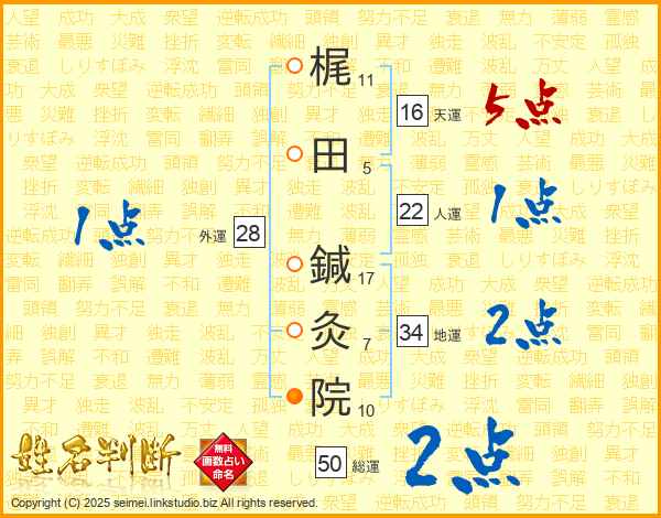 梶(11画)田(5画) 鍼(17画)灸(7画)院(10画)
