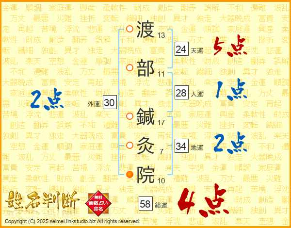 渡部鍼灸院さんの総運は58画の4点!