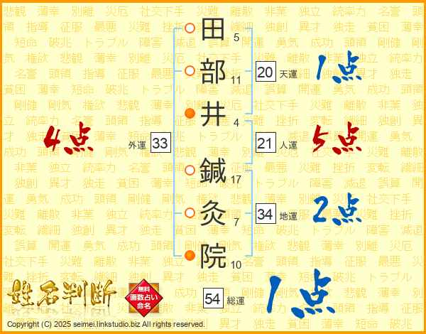 田(5画)部(11画)井(4画) 鍼(17画)灸(7画)院(10画)