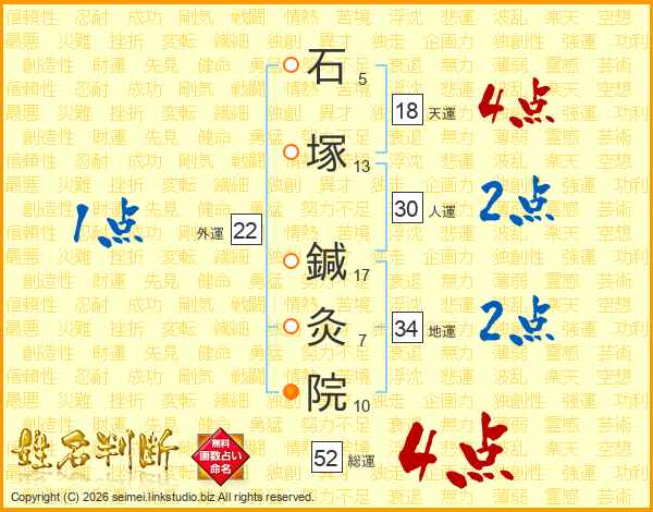 石塚鍼灸院さんの総運は52画の4点!