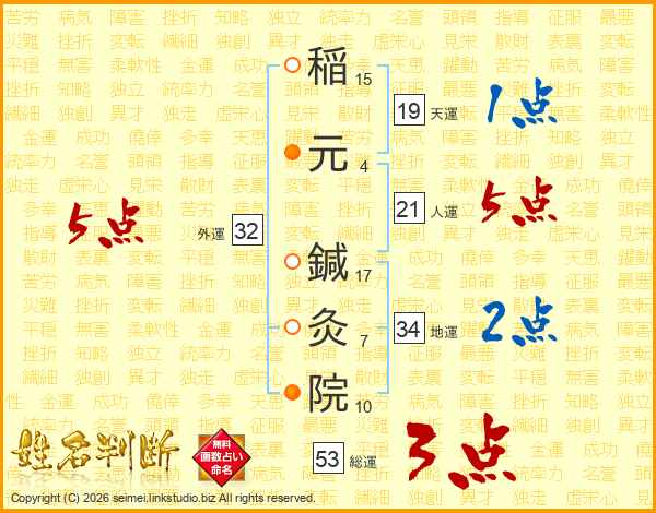 稲元鍼灸院さんの総運は53画の3点!
