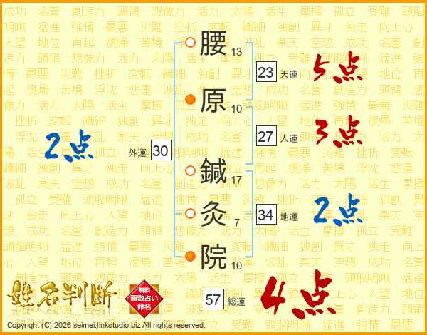 腰原鍼灸院さんの総運は57画の4点!