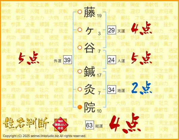 藤ヶ谷鍼灸院さんの総運は63画の4点!