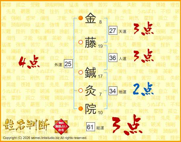 金藤鍼灸院さんの総運は61画の3点!