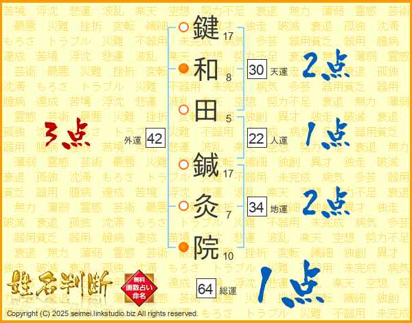 鍵和田鍼灸院さんの総運は64画の1点!