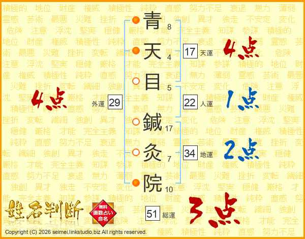 青天目鍼灸院さんの天運は17画の4点!