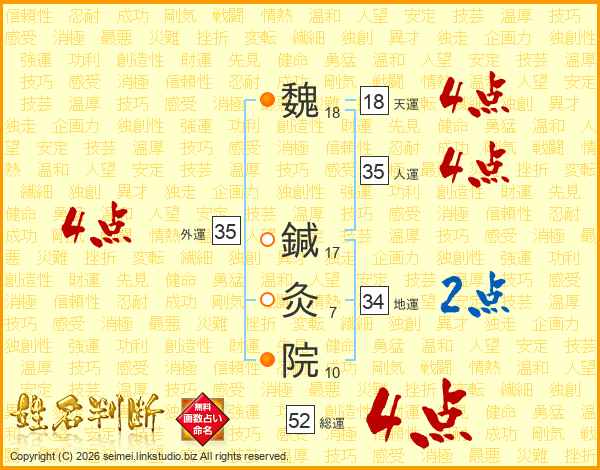 魏鍼灸院さんの総運は52画の4点!