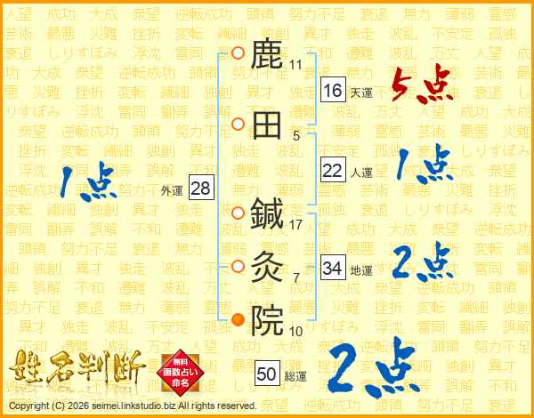 鹿田鍼灸院さんの総運は50画の2点!