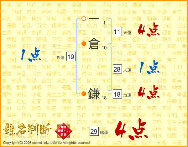一倉鎌さんの総運は29画の4点!
