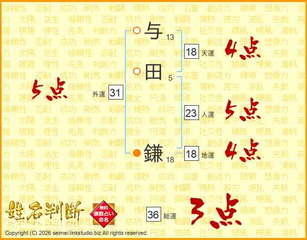 与田鎌さんの天運は18画の4点!