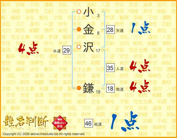 小金沢鎌さんの総運は46画の1点!