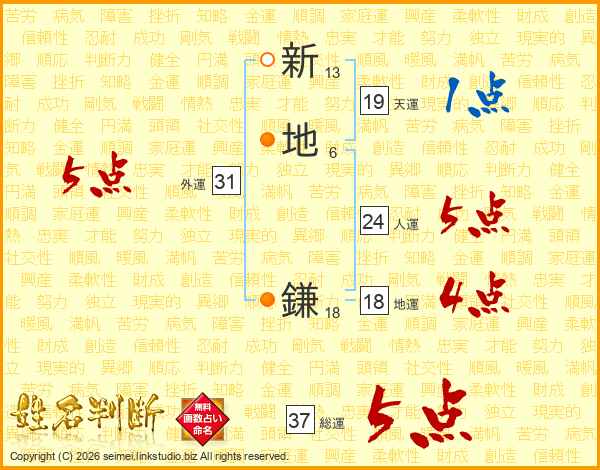 新地鎌さんの総運は37画の5点!